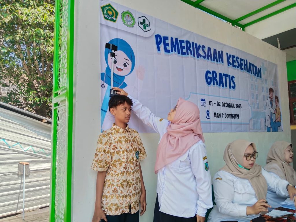Kab. Jombang, 2 Oktober 2025 – Dalam rangka meningkatkan kesadaran dan kepedulian siswa terhadap kesehatan, Puskesmas Keboan mengadakan kegiatan pemeriksaan kesehatan gratis di MAN 7 Jombang. Kegiatan ini dilaksanakan selama dua hari, yaitu pada tanggal 1 dan 2 Oktober 2025, dengan sasaran utama adalah para siswa.
