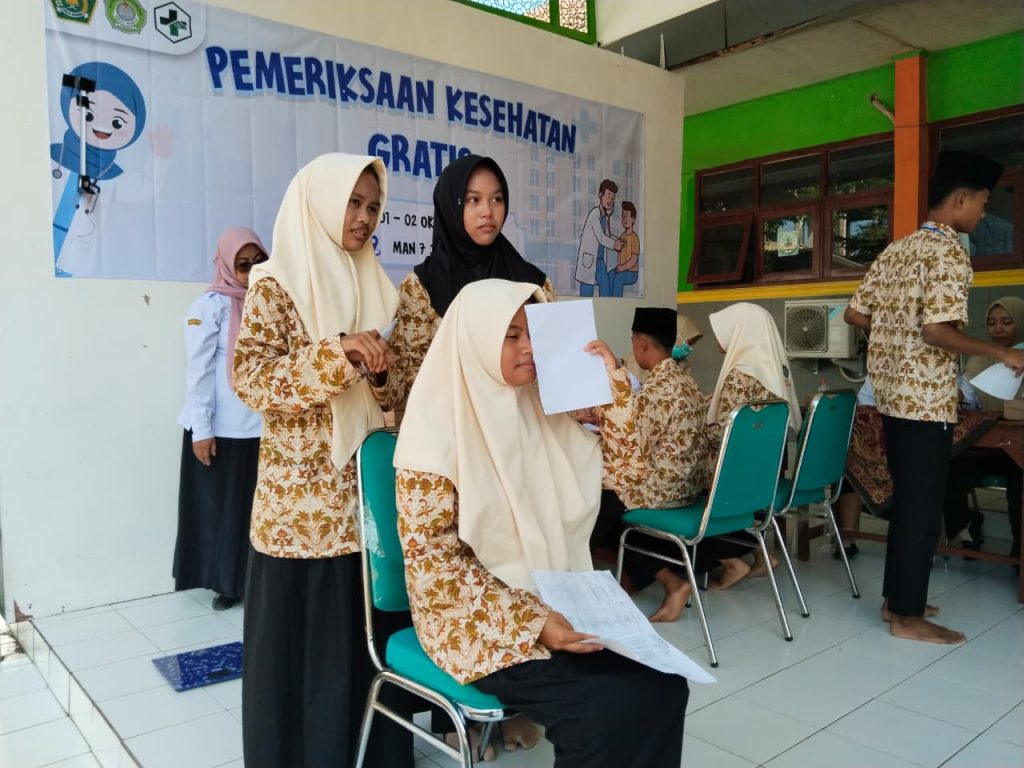 Kepala MAN 7 Jombang, Masrukhin, M.PdI. menyampaikan apresiasi atas kerja sama yang baik antara sekolah dan Puskesmas Keboan. “Kegiatan seperti ini sangat penting untuk mendeteksi dini potensi masalah kesehatan pada siswa,” ujarnya.