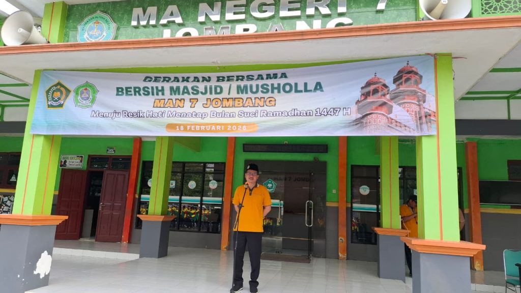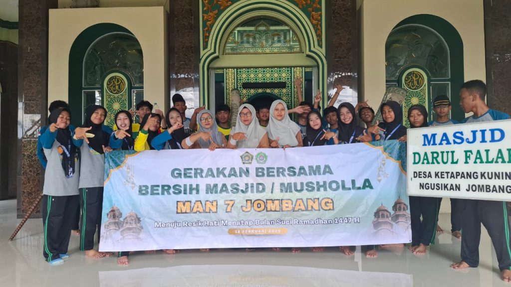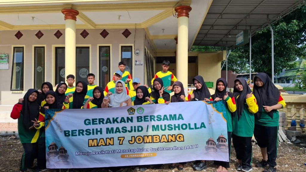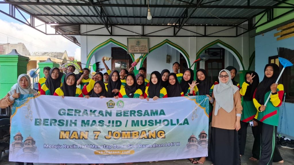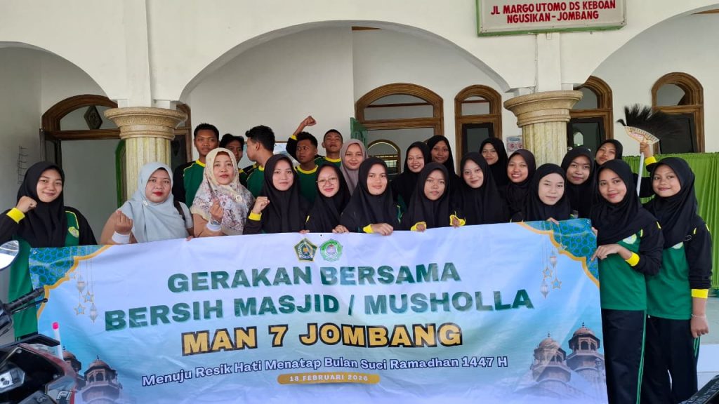Kab. Jombang (MAN 7) – Dalam rangka menyambut datangnya bulan suci Ramadhan 1447 H, keluarga besar MAN 7 Jombang menggelar kegiatan Bersih Bersih Masjid dan Musala) pada Rabu, 18/02/2026. Kegiatan ini mengusung tema “Bersih Bersih Masjid/Musala Menuju Resik Hati Menapaki Bulan Suci Ramadan 1447 H.” sebagai bentuk ikhtiar lahir dan batin dalam menyambut bulan penuh berkah.