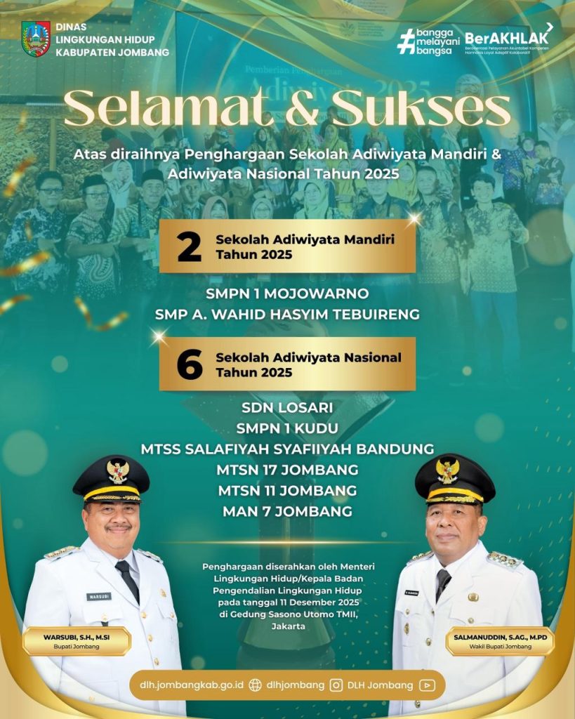 JAKARTA/JOMBANG, 11 Desember 2025 – Madrasah Aliyah Negeri (MAN) 7 Jombang kembali mengukir prestasi gemilang di tingkat nasional. Madrasah ini secara resmi dianugerahi penghargaan Adiwiyata Nasional 2025 oleh Kementerian Lingkungan Hidup/Badan Pengendalian Lingkungan Hidup (BPLH).